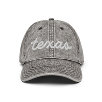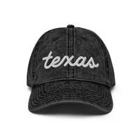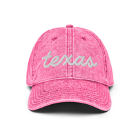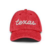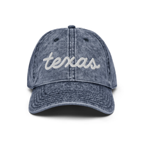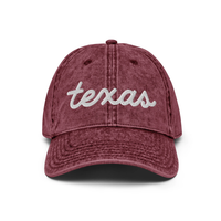Texas script now on this vintage "Otto" cotton twill hat. Comes in 6 different colorsEverybody knows that dad caps are no longer just for dads, so get an embroidered cotton twill cap for yourself! This one's really special thanks to the intricate embroidery detail and the washed out vintage feel.