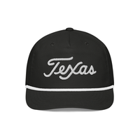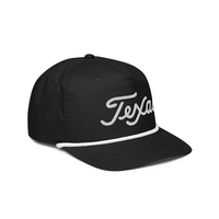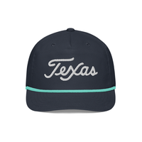 Texas Script Golf Rope Hat. Add a touch of classic style to your outfit with the golf rope cap. Featuring a structured fit, rope detail, and adjustable snapback, it’s perfect for any outing.
